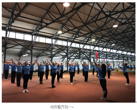 为丰富我系教职工的业余文体生活,营造团结、和谐、进取的校园文化氛围,展示我系教师积极向上的精神风貌,喜迎党的十九大胜利召开,按照校工会关于组织开展广播操展演的要求,1017日下午5点,民表系工会组织全系老师在田武馆学习第九套广播体操,并现场展示评比。