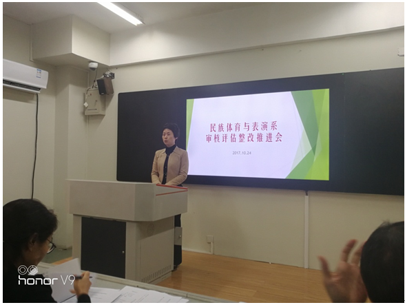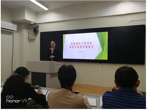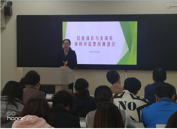 10月24日中午1:30,民表系审核评估工作整改推进会在教学实验楼1204教室召开。副校长李江、系主任吴晓红、副主任支川、副书记叶瑛,民表系全体老师参加了本次会议。