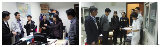 2、10月28日中午,校党委书记、校审核评估工作指挥部总指挥朱传耿、副校长金松等领导来我系检查迎评工作并亲切慰问。