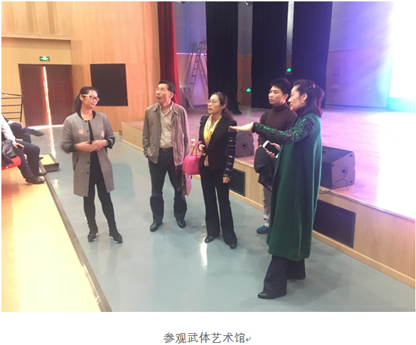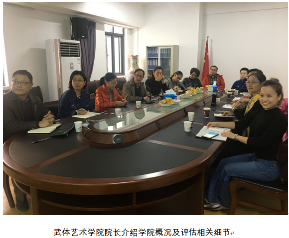 吴主任一行首先在武汉体育学院艺术学院副院长李芳的陪同下参观了武体艺术馆,了解了综合剧场、舞蹈房、琴房、音乐编辑室、服装打板室的使用情况,咨询了场馆建设情况。随后体验了武体的部分课程教学与社团实践活动,并考察了对方的课程安排情况和教学的具体实施环节。接着,双方在武体艺术馆的会议室召开了本科教学审核评估经验座谈会,就评估前、评估中和评估后三个阶段的具体工作细节进行了深入的交流与探讨。