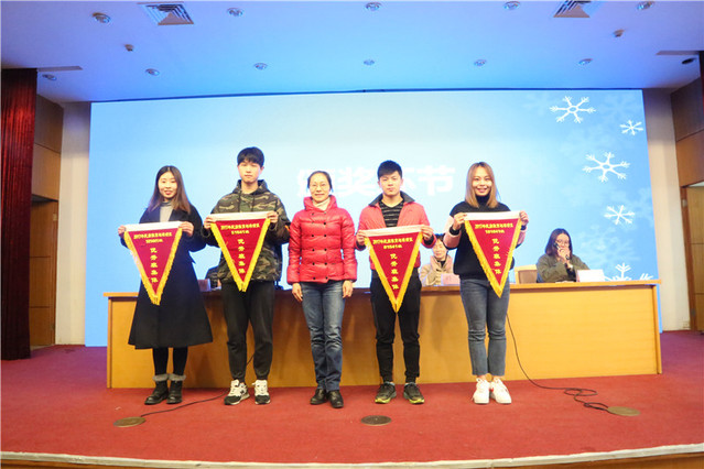 随后,支主任宣读了我系本学期的一系列处分决定,并对涉及到的12名被处分同学提出了严正批评,同时也敦促这些同学及时改正错误,改过自新。紧接着,支主任又向与会师生公布了我系2017年度“优秀班集体”和“优秀学习标兵”的评比活动结果,181441班、51541班、81541班和181641班四个班级获得“优秀班集体”荣誉称号,张天麟、葛星等19名同学获得“优秀学习标兵”荣誉称号。支主任代表我系肯定了获奖班级和个人在一年来做出的努力和贡献,并鼓励他们戒骄戒躁,更进一步。评比结果公布后,三位领导又对获奖的学习标兵个人和班级代表颁发了荣誉证书和锦旗,对他们进行精神嘉奖。