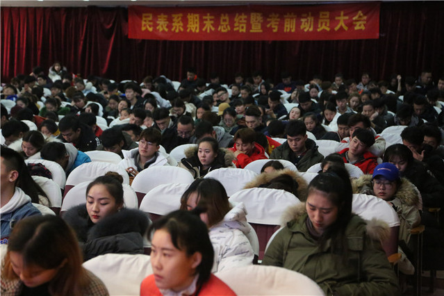为使我系2018年度更好地开展学生工作,2017-2018学年第一学期期末考试来临之际,我系师生齐聚校报告厅,召开民族体育与表演系2017年度学生工作总结暨2017-2018学年第一学期期末考试动员大会,总结回顾一年来的学生工作,并对全系学生进行考试动员。