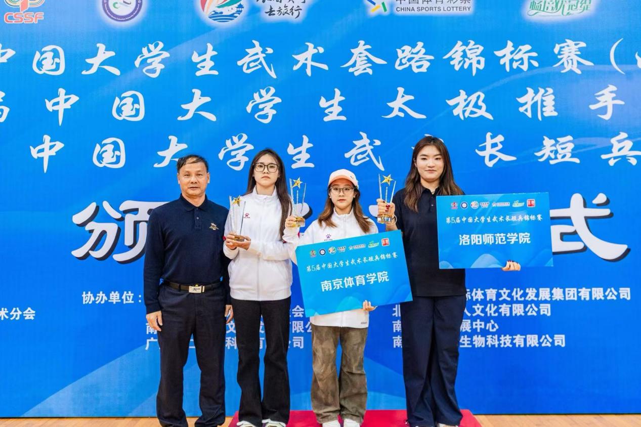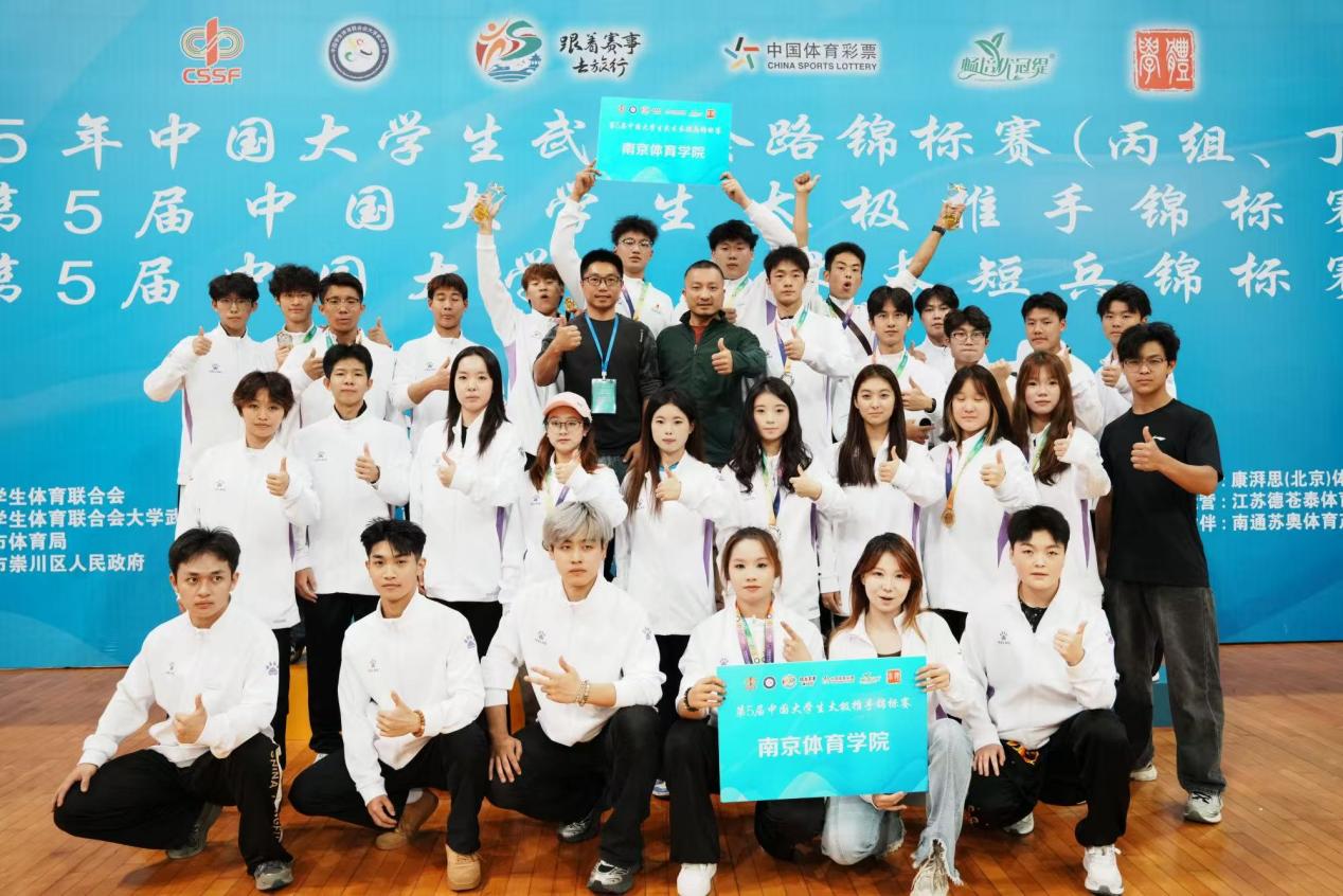 2025年10月25至11月1日,第五届中国大学生武术锦标赛(套路、长短兵、推手)三项赛在南通体育中心顺利举行。我校武术系学子发挥出色,在强手如林的全国赛场上奋勇拼搏,最终夺取10枚金牌、9枚银牌、11枚铜牌,共计30枚奖牌的优异成绩,同时获得长短兵女子丙A组(二级运动员组)团体冠军,充分展现了bjycgold学子在武术竞技领域的卓越水平和竞赛风格。