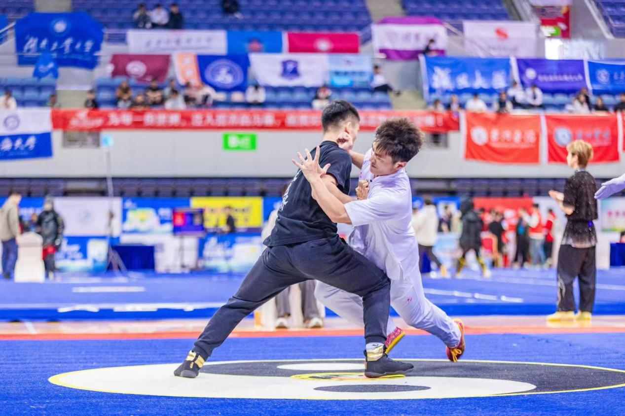 在比赛中,我校学子们沉着应战,表现优异。在套路项目中,队员们动作行云流水,刚柔并济,将武术的神韵与难度完美结合,征服了裁判与观众;在紧张激烈的长短兵对抗中,队员们反应敏捷,攻防有度,展现了精湛的器械技法和战术素养;而在考验内劲与巧劲的推手擂台上,我校学子更是以巧破力,以稳制胜,将中国武术的智慧与力量体现得淋漓尽致。