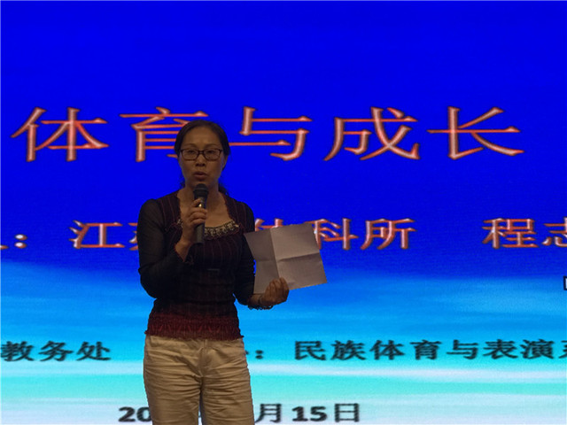 程志理教授从被一个公众号盗用的微信段子导入,生动形象地讲述运动学习的生命史特征和运动身体的主体性特征,谈到具“体”的时空经验及其启示。从身体运动如何成为认知方式揭示体认范式下的认知新体系、体育的存在论把握。由体育与人的审美关系、身体认知是人类认知科学这种重要认识,是基础性认知形式、体育是人学研究的巅峰三个主题谈了体育与成长,报告中特别强调了一个概念——体认,体认是基础认知形式,体育是身体的运动,更是以智力为灵魂的事业、是真善美的集成,在认识、实践、策略及反策略等运动过程中,都始终贯穿着智慧的运动。