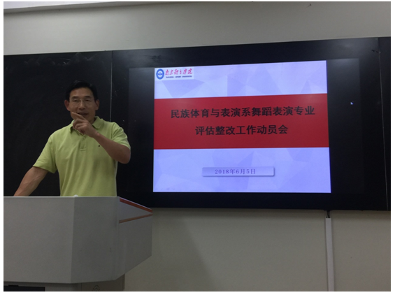 6月5日中午13:30民族体育与表演系在教学楼1204教室召开了舞蹈表演专业评估整改工作动员会,系全体教职工参加了此次会议。