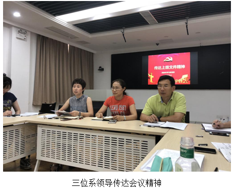 接下来,支川主任传达了校领导在近期会议的讲话精神。我校党委书记朱传耿对全体教职工提出了四点要求:一要认真传达落实中央、省委有关文件精神。二要圆满完成下半年工作任务。三要把高质量贯穿的所有工作的全过程。四要以作风建设为抓手深入推进全面从严治党。校党委副书记、校长杨国庆在近期会议中强调了近期需要着力推进的五项重要工作:一是按要求尽快完成四年备战周期规划的修改完成工作。二是做好新教师入职、学生开学报到注册及新生军训工作。三是做好人才引进工作。四是做好全校师生的思想培训工作。五是尽快开展首轮巡查反馈工作。