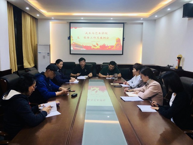 11月4日下午,武术与艺术学院召开党务月度工作会议。学院党总支委员和各支部书记出席会议。总支书记殷怀刚主持会议。