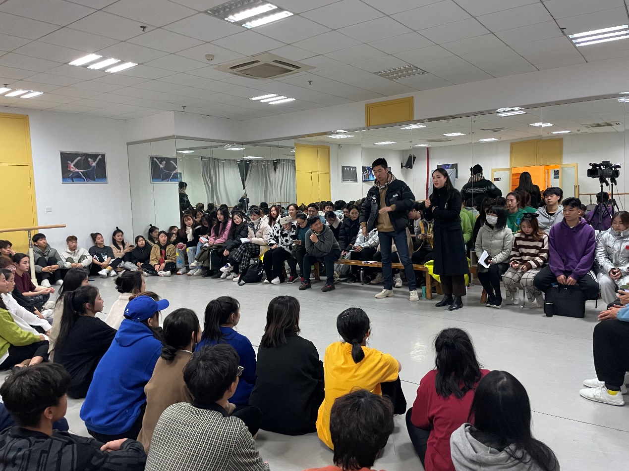 2021年12月23日,表演专业核心课程《表演元素训练》期末汇报在体育馆一楼舞蹈教室举行。在我院两位外聘教师:江苏省演艺集团何达老师和南京传媒学院张誉允老师的指导下,2021级表演专业44名新生为大家带来了一场精彩的汇报演出。武术与艺术学院院长支川、副院长杜家俊、表演系系主任江山以及表演系的师生也亲临现场观看。
