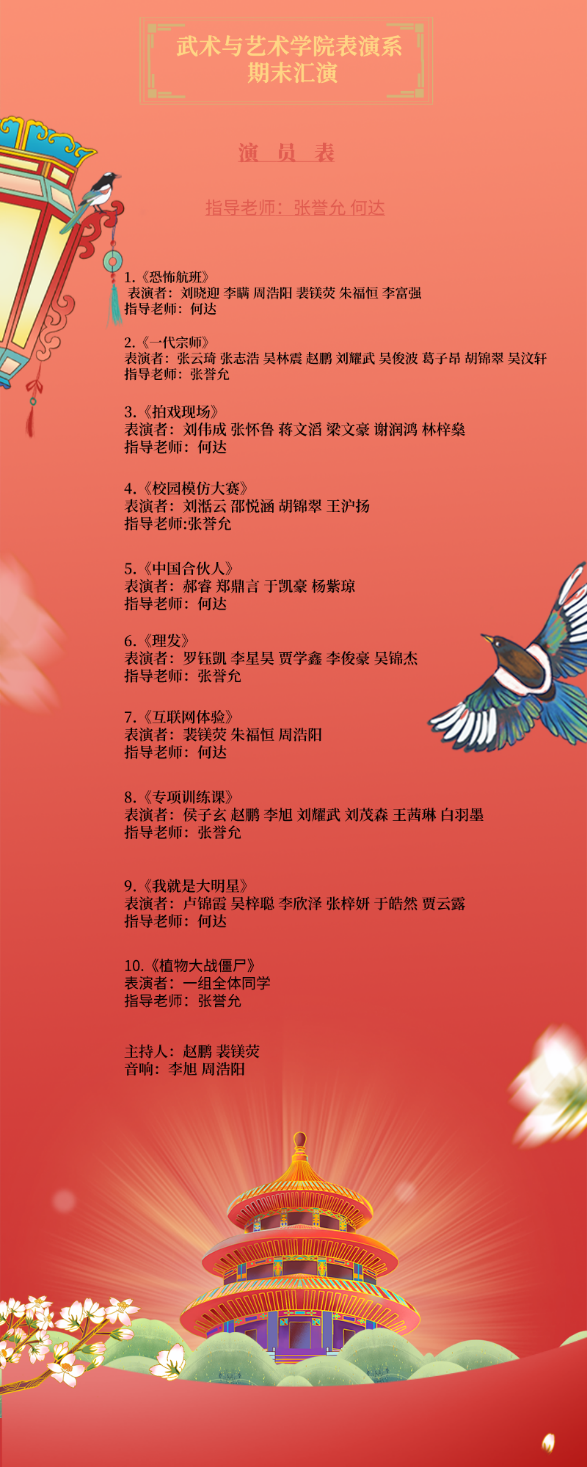 这场演出的成功,离不开学校领导对于我们专业的支持,离不开老师们的悉心教导,离不开同学们努力认真的配合。这次演出也体现出表演专业大一新生崭新的精神面貌,体现了表演专业的教学成果。