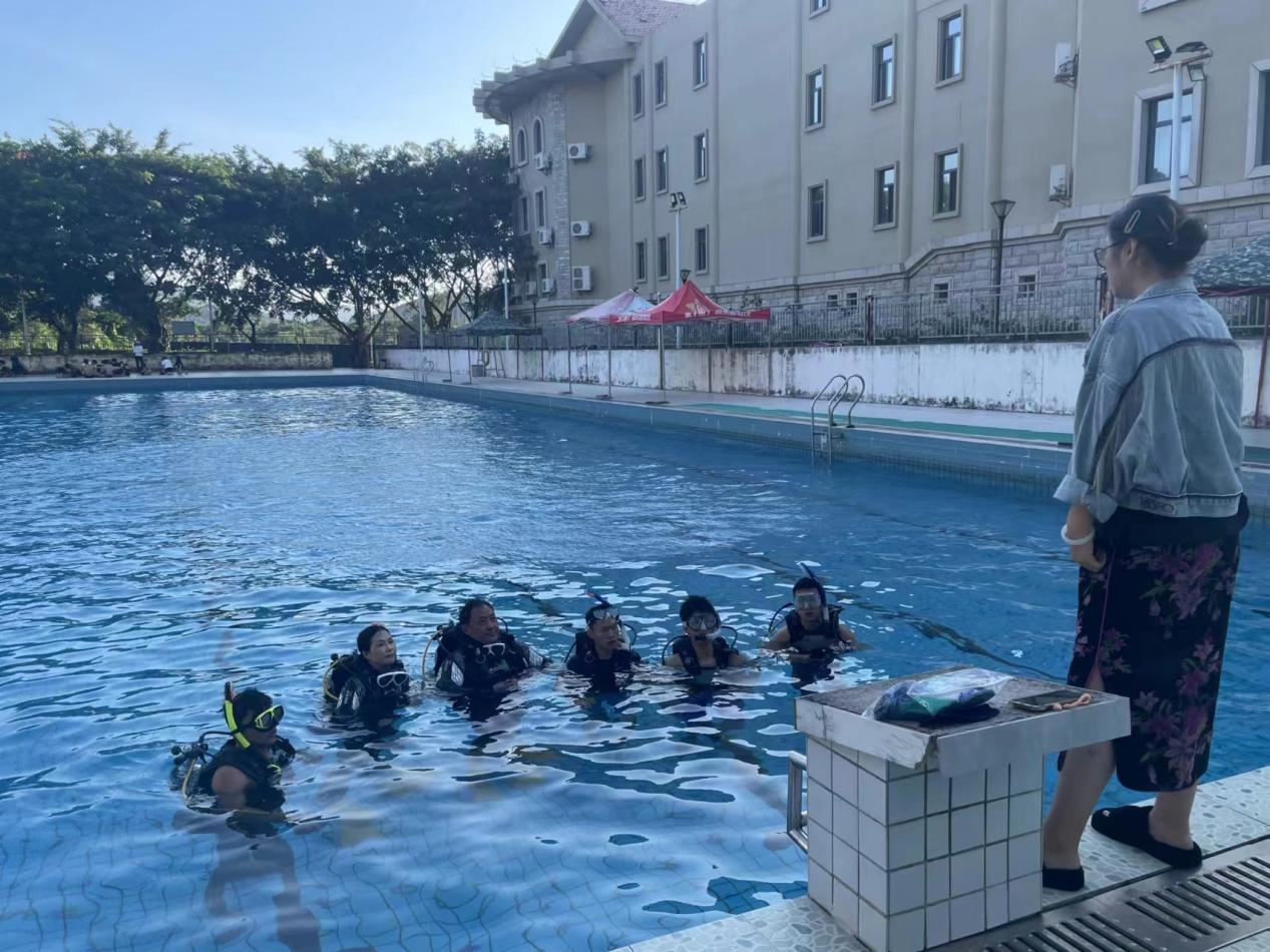 2023年11月23日,运动训练学院田游系游泳专项教师一行五人前往三亚学院体育学院进行了专业对口交流,调研主要涵盖游泳课程特色教学及潜水课程的设计、方案和经验,并进行了潜水等实操交流。