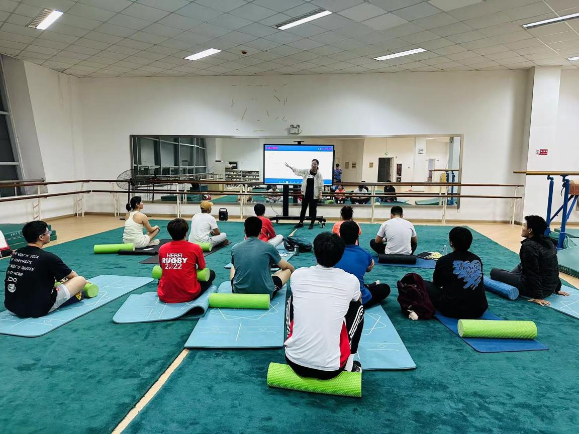 胡鑫老师讲授了动作准备和恢复再生两部分内容。动作准备部分从达尔文进化论和关节与关节的相互依存理论讲授原理,并对美国有代表性的EXOS、RYPT体系系统化地进行实操演练。再生训练从目的、原理和手段进行授课,重点讲授和演示了软组织放松的工具、手段和注意事项。让学生对准备活动和恢复再生建立了系统化、个性化的概念。
