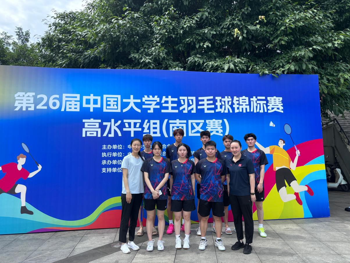 本次比赛,运动训练学院副院长张明担任领队,羽毛球专项教师尤铭、邵嘉惠担任教练员,运动员由运动训练学院羽毛球专项9学生(其中男运动员7名、女运动员2名)组成。我校运动员参加了组男团、男单、男双、女双、混双五个项目,经过六天的激烈角逐,我校代表队女子双打和男子双打闯入总决赛。