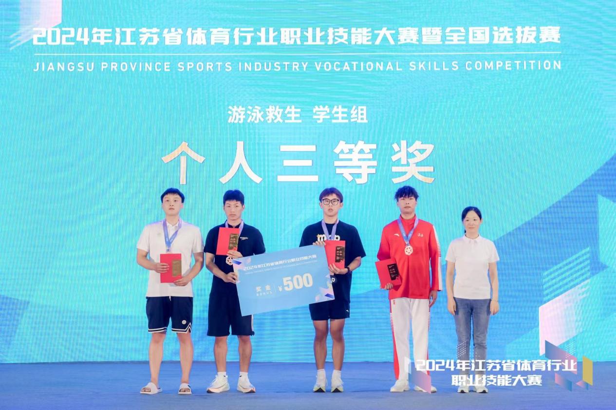 202499日至11日,江苏省体育行业职业技能大赛暨全国选拔赛在徐州市奥体中心游泳馆举行。本次比赛由江苏省体育局、中共江苏省委省级机关工作委员会、江苏省总工会、江苏省教育厅主办,江苏省体育人才流动服务中心、江苏省体育行业特有工种职业技能鉴定站和徐州市体育局承办。游泳救生职业技能比赛分为职工组和学生组,全省40支代表队、三百余人参赛。南京体院运动训练学院经过层层选拔和训练,组织了六名学生参赛并取得了优异成绩。