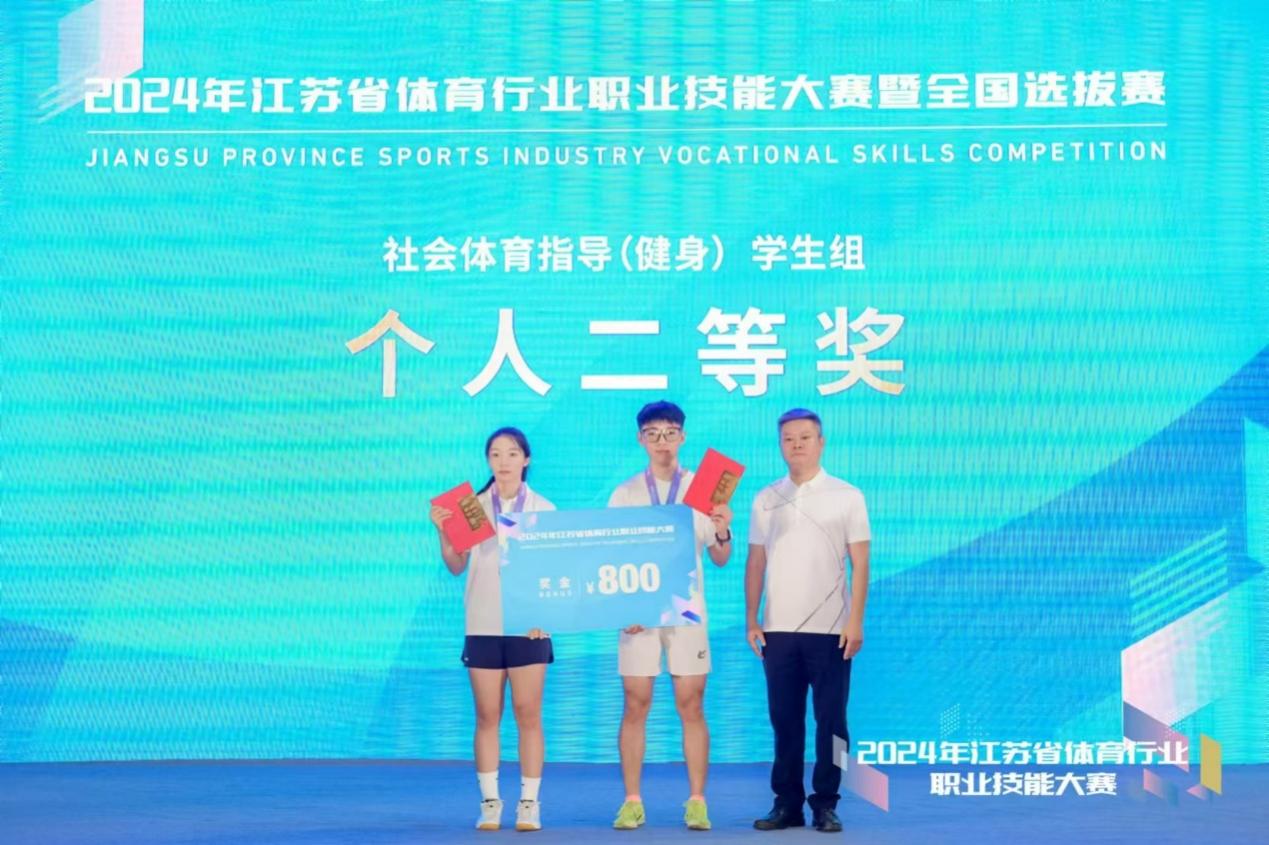 2024年9月9日至9月11日,江苏省体育行业职业技能大赛暨全国选拔赛在徐州市奥体中心成功举办。由运动训练学院院长赵琦带队,李巍、王冬君任教练,8名运动训练学院学生组成的代表队在此次比赛中获得3项个人一等奖和团体二等奖的好成绩。