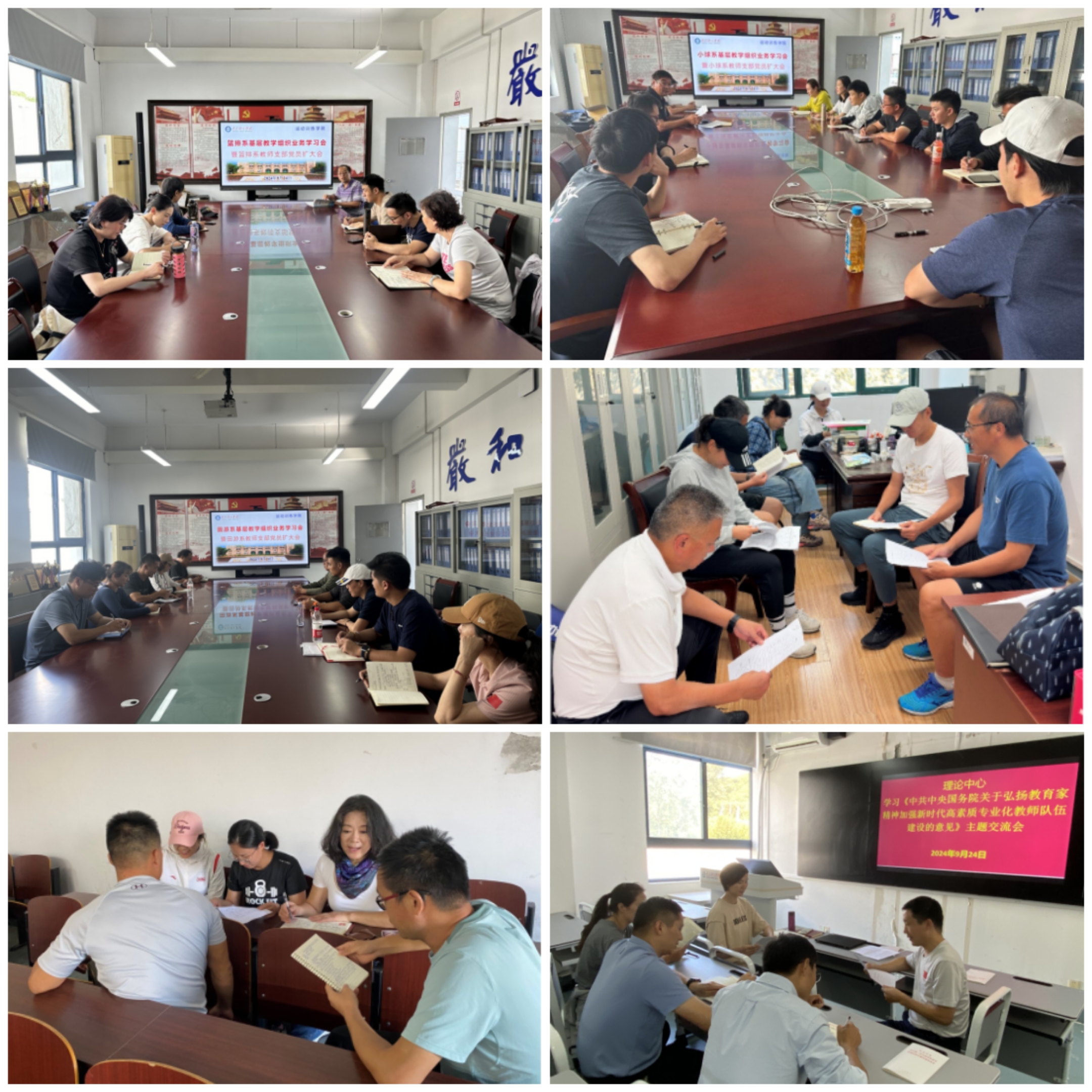 活动中,运动训练学院各系教师集中学习了《中共中央国务院关于弘扬教育家精神加强新时代高素质专业化教师队伍建设的意见》文件精神。教师们针对《意见》中有关教师队伍思想政治工作、师德师风基本要求、教师专业素养与业务能力提升、新时代教育工作与教师工作相关要求等进行了深入学习与研讨。