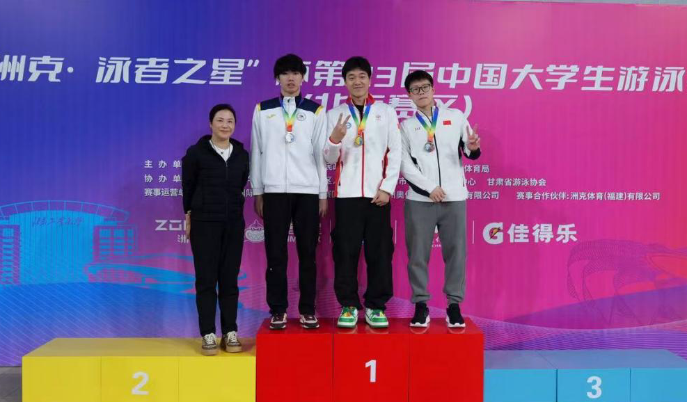 2024年10月23-26日,第二十三届中国大学生游泳锦标赛在兰州市开赛。本届锦标赛由中国学生体育联合会和兰州市人民政府主办,兰州市体育局承办,吸引了来自众多高校的80支代表队、798名运动员及教练员参赛。比赛设置了自由泳、蛙泳、仰泳、蝶泳和个人混合泳,以及4×100米自由泳、4×100米混合泳等接力项目的比赛。我校大学生运动员在4个比赛日中,奋力拼搏,勇争第一,共获得八枚金牌,可喜可贺!