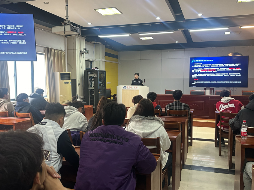 讲座重点围绕防范电信网络诈骗和矛盾纠纷主题展开。在防范电信网络诈骗部分,警察详细讲解了常见的诈骗手段,如网络贷款诈骗、兼职刷单诈骗等,通过实际案例让新生们深刻认识到诈骗的隐蔽性和危害性,同时传授了识别诈骗的方法和防范技巧。针对矛盾纠纷问题,强调了在校园生活中如何与同学友好相处,遇到矛盾应如何冷静、妥善处理,避免冲突升级。