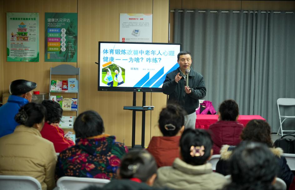 35日上午,南京市江宁区举办“学雷锋,送健康”全民健身志愿服务主题活动。体能支部书记胡海旭自发报名参与,为江宁上坊社区医院带来题为《体育锻炼改善中老年人心理健康——为啥?咋练?》的公益讲座。讲座聚焦中老年人心理健康,结合体育锻炼的科学方法,深入浅出地讲解锻炼对心理健康的积极影响,并社区居民广泛关注的健身与健康问题进行现场答疑,受到社区居民的热烈欢迎。