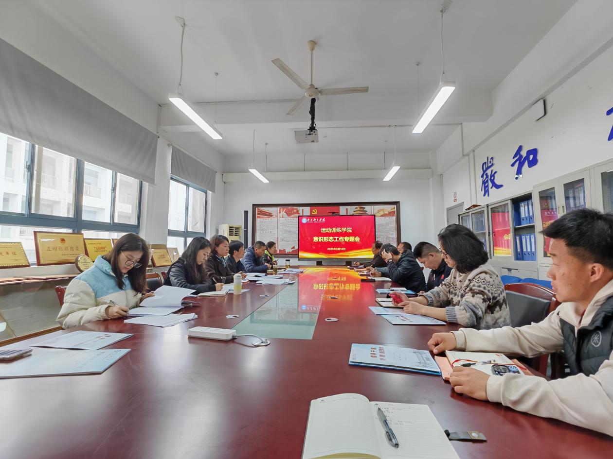 为抓好意识形态工作,切实扛牢政治责任,全面落实意识形态工作责任制,3月12日上午,运动训练学院党总支在仙林校区B305会议室召开了意识形态工作专题会。学院党总支书记葛见珠主持会议,班子成员、科以上干部及各系主任、支部书记参加会议。
