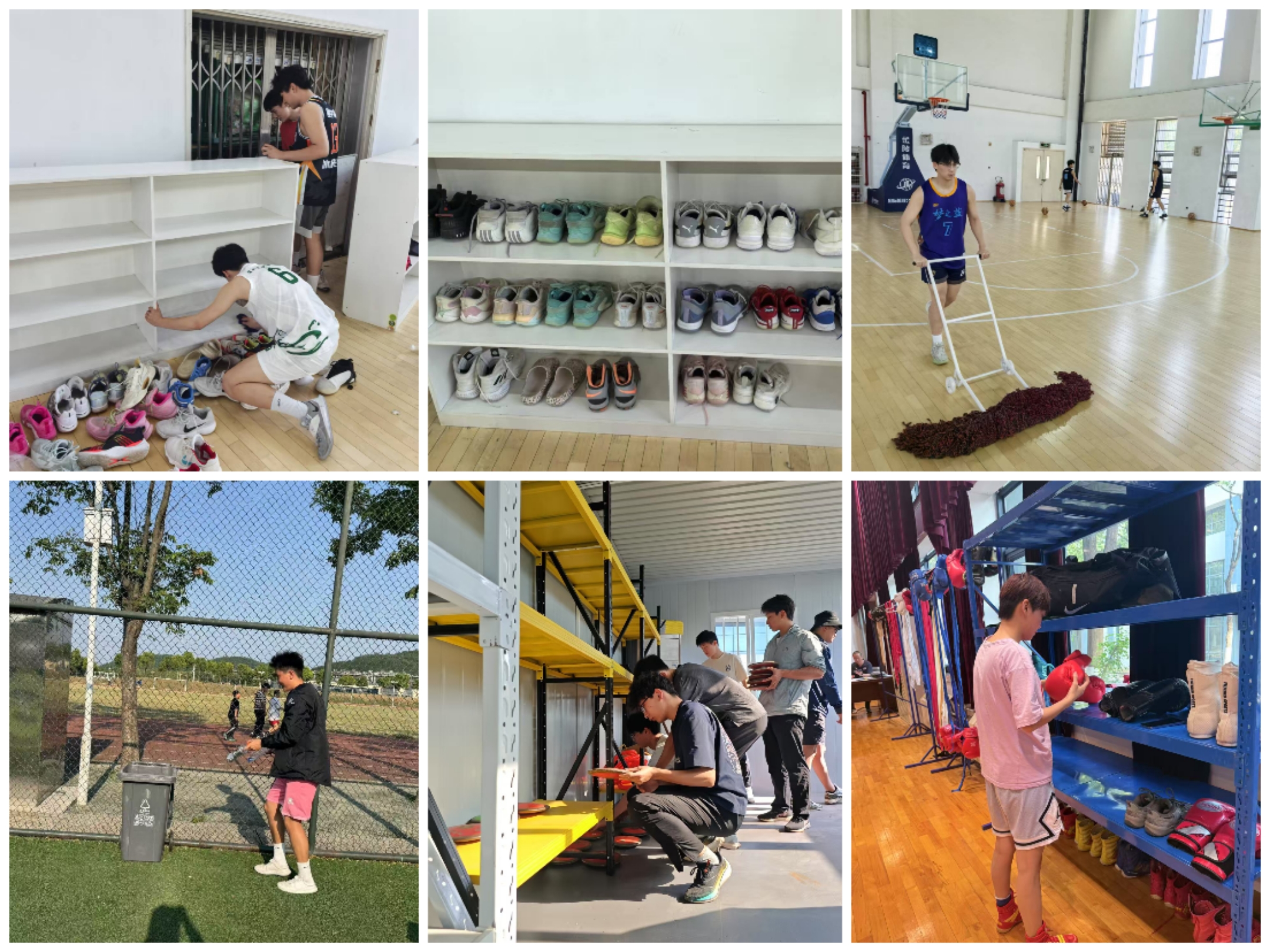 在场馆劳动实践环节,学生们根据各自专项特点,有条不紊地开展工作。同学们不仅高效完成了场馆整理与打扫任务,还在劳动过程中加深了对专业器材维护和使用规范的理解。五一假期前夕,学院组织学生开展宿舍整理及安全隐患排查工作。学生们积极行动,对宿舍进行全面清扫,整理内务,将物品摆放得井井有条,营造出整洁舒适的居住环境。同时,同学们还对宿舍内的电器、电线等进行细致检查,增强了安全防范意识。通过此次活动,学生们养成了良好的生活习惯,进一步提高了安全意识,也增强了宿舍成员之间的凝聚力。