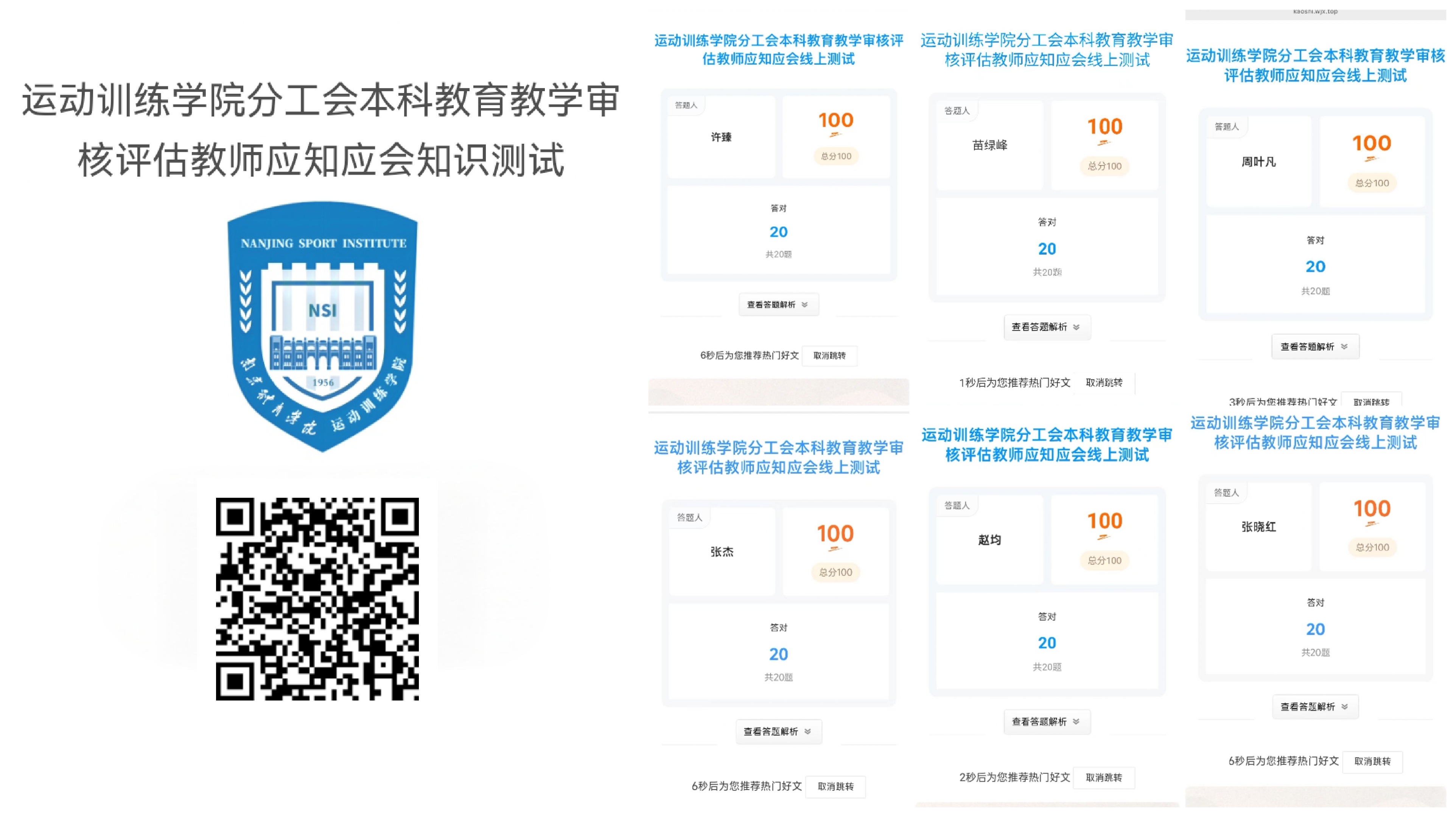 此次知识测试活动是运动训练学院迎接本科教育教学审核评估工作的重要举措之一,不仅有效检验了教师对审核评估知识的学习成果,也进一步增强了教师参与评估工作的责任感与使命感。运动训练学院将继续以本科教育教学审核评估为契机,持续深化教育教学改革,提升人才培养质量,凝心聚力做好各项迎评准备工作,力争在本科教育教学审核评估中交出满意答卷。