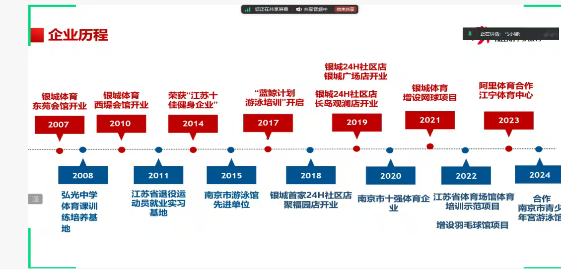 随后,南京银城体育有限公司总经理宋之强、南京冠枫体育有限公司总经理许枫 、金陵鼎丰健身董事长钱银封、上海美再晨体育发展有限公司董事长黄小丽,分别围绕企业发展历程、岗位需求、职业发展路径等进行详细介绍,为学生们带来涵盖体育运营、健身管理等多领域的就业选择,现场互动积极,学生们通过线上交流深入了解企业情况。