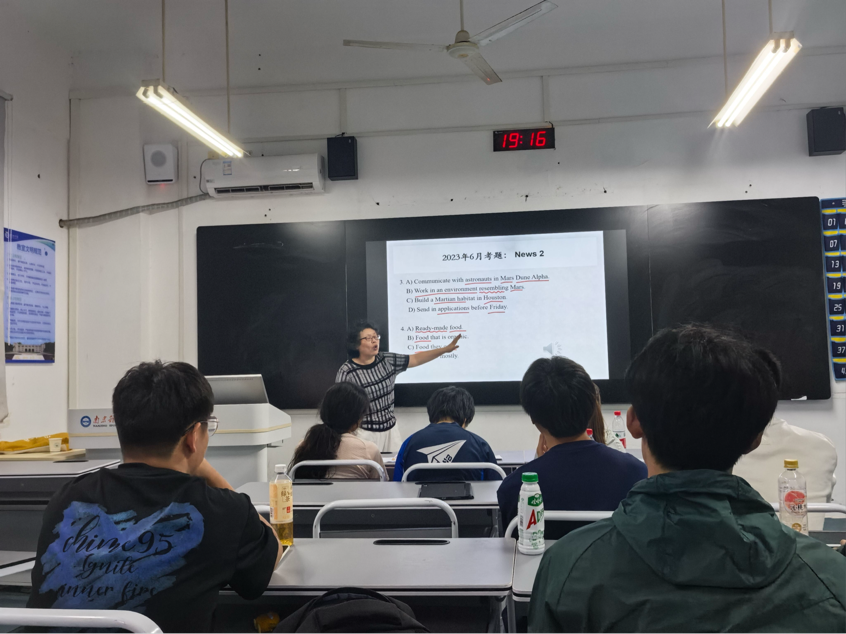 在首次讲座中,王晓红直击四级考试核心内容,重点强调审题的重要性。她指出,许多同学因审题不清而答题出现偏差,面对阅读、听力等题型时,务必仔细研读题目要求,精准把握关键信息以明确答题方向。在谋篇布局方面,分享了高分作文的结构秘诀,建议考生采用经典结构,同时强调字体卷面的重要性,指出整洁美观的字迹能给阅卷老师留下良好印象。此外,她还详细剖析常见语病,教导同学们运用正确的语法、词汇构建完整且富有表现力的句子。第二次讲座中,晓红对写作部分进行了深入讲解 全面阐释“打草稿,观点陈述”技巧,强调先打草稿罗列观点理顺思路,再添枝加叶丰富文章。在阅读部分,她详细阐述如何从段落中寻找逻辑词把握文章脉络。听力技巧方面,她强调“先预读,再圈名词,猜大意;再按照顺序原则,抓住动宾关系及共同义替换”的方法。
