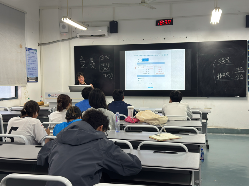晓红凭借深厚的学术造诣和丰富的教学经验,深入浅出地剖析了英语四六级考试的核心要点和高分策略她通过生动形象的示例以及与同学们积极互动,使得现场气氛热烈活跃会后,同学们纷纷表示受益匪浅收获了实用的备考技巧、信心和动力,将运用所学策略精心打磨备考方案,取得优异成绩。