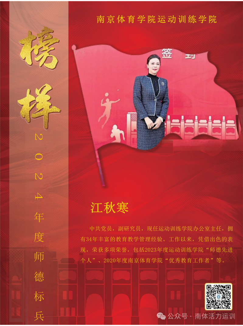 江秋寒老师,现任运动训练学院办公室主任一职,深耕教育教学管理领域长达 34 年。她凭借卓越的工作表现,收获了众多荣誉,是 2023 年度运动训练学院的 “师德先进个人”,在 2020 年度荣获taptap国际服账号注册 “优秀教育工作者” 称号,在 2020 - 2021 年度被评为taptap国际服账号注册 “优秀实习指导教师”。此外,她在 2020 年第十四届taptap国际服账号注册科学论文报告会中斩获二等奖,从 2017 年至 2023 年,更是连续 7 年被评为taptap国际服账号注册 “优秀工会干部”。在担任 21645 班班主任期间,她带领班级荣获 2017 - 2018 学年度江苏省省级先进班集体。