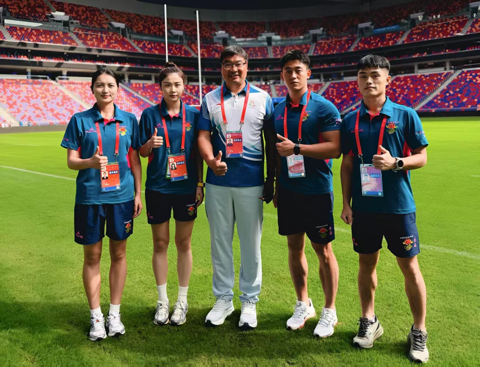 中华人民共和国第十五届运动会(又称“大湾区全运会”)由粤港澳三地联合承办。本届全运会承载着特殊的历史使命,既是国家推进大湾区协同发展的重要举措,也是向世界展示“一国两制”制度优势和中国式现代化新成就的创新之举。全运会作为国内最高级别的竞技体育赛事,汇聚了全国最顶尖的运动员和裁判员,代表着国内体育赛事的最高水准。我院张杰老师凭借其深厚的专业造诣与卓著的行业声誉,受国家体育总局委派参与到这一国家级顶级体育盛会橄榄球项目担任竞赛技术官员工作。这已是张杰老师第三次在全运会中担任橄榄球项目的裁判工作。