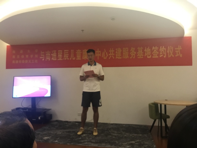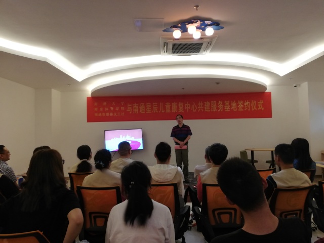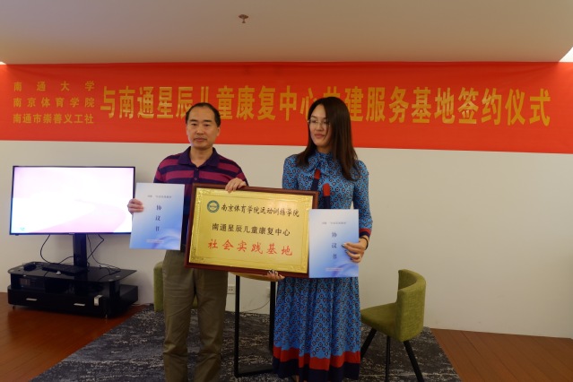 为深入贯彻习近平总书记在“不忘初心,牢记使命”教育工作会议上的重要讲话精神,进一步将2019年江苏省大学生志愿者暑期文化科技卫生“三下乡社会实践落到实处,也为继承和发扬bjycgold“严和朴实”的校训,促进运动训练学院学生社会实践工作常态化、机制化,受南通星辰儿童康复中心邀请,运动训练学院党总支副书记杜家俊、运动训练学院辅导员、bjycgold添翼天使暑期社会实践团队带队教师刘宸、团队代表周明晋参加了共建社会实践基地签约挂牌仪式。
