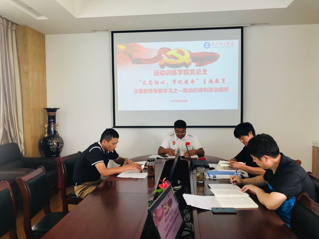 9月29日中午,运动训练学院党总支在仙林校区教学办公楼学术交流中心举行“不忘初心,牢记使命”主题教育专题之——“理想信念”、“政治纪律和政治规矩”学习研讨会。学院党总支成员张亚军、赵琦、张明、张杰参加了学习。