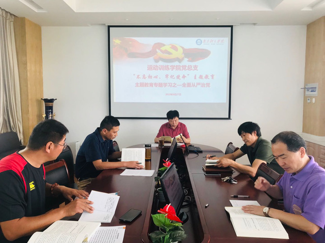 9月27日中午,运动训练学院党总支在仙林校区教学办公楼学术交流中心举行“不忘初心,牢记使命”主题教育专题之——“全面从严治党”、“党的宗旨意识”学习研讨会。会议由学院党总支书记张亚军主持,学院党总支全体成员参加了学习。