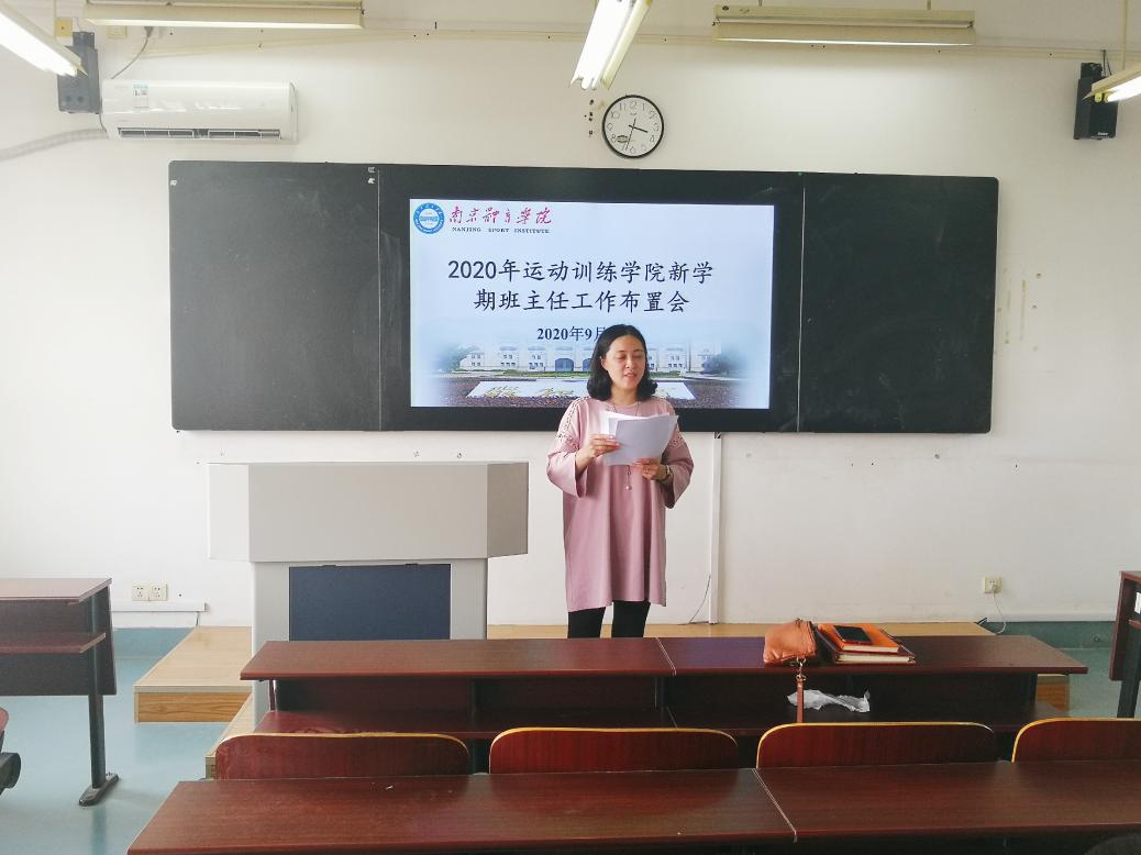 2020年9月8日下午15时,运动训练学院在教学楼401教室召开2020年新学期辅导员、班主任工作会议。运动训练学院党总支副书记喻菊、学院各年级辅导员和各班班主任参加会议。会议由喻菊主持。
