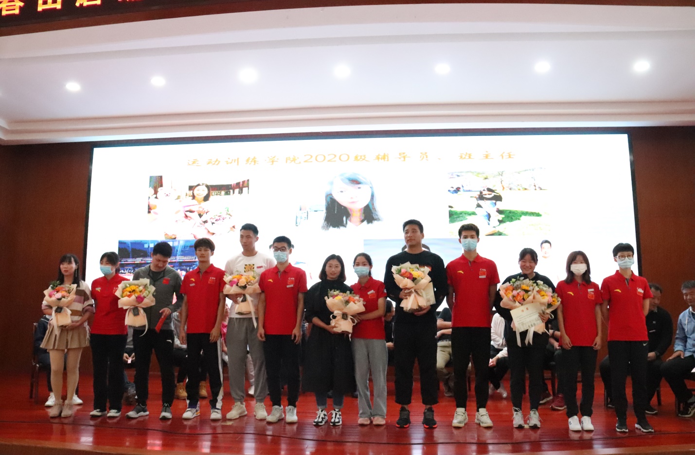 在2020级全体新生的见证下,运动训练学院举行了新生班主任聘任仪式。副院长张明宣读学院关于聘任单志铭等六位老师为新生班主任的决定,总支副书记喻菊分别为六位2020级新生班主任颁发聘书,新生代表向敬爱的班主任献上鲜花,并送上感激和充满期待的拥抱。