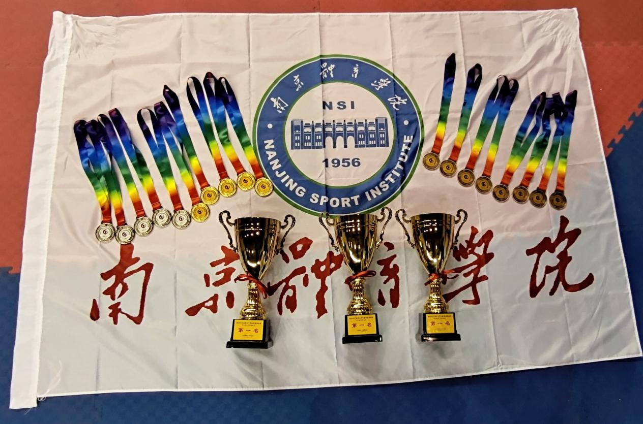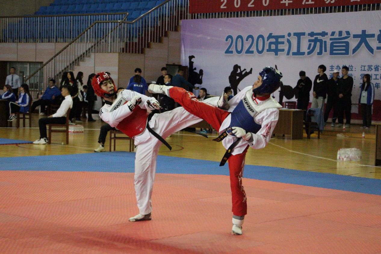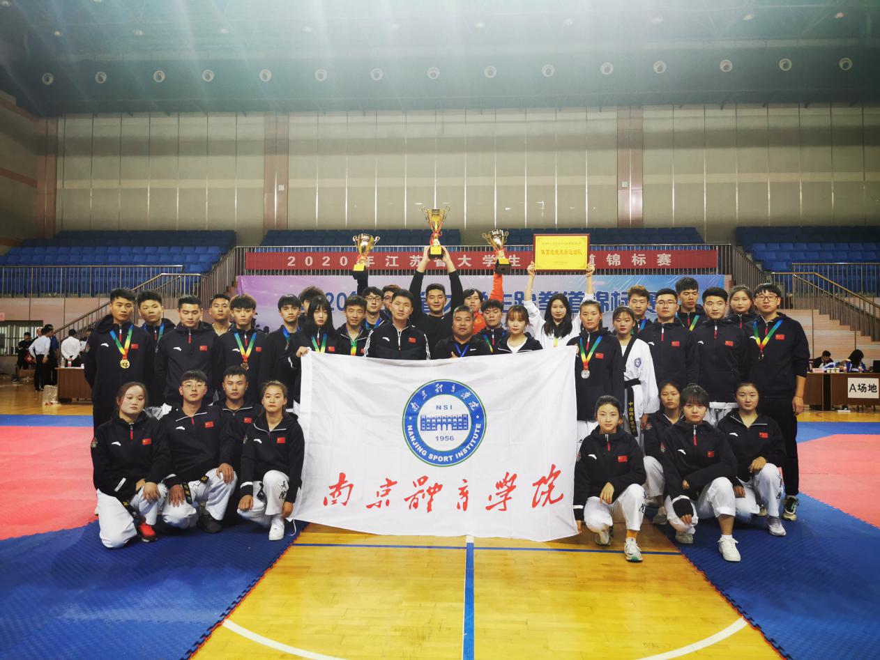 2020年11月8日,江苏省大学生跆拳道锦标赛在常州工程职业技术学院落下帷幕。本次赛事由江苏省体育协会主办,常州工程职业技术学院承办,共有来自全省44所高校近600名运动员参加。我校跆拳道队由运动训练学院24名跆拳道专项学生组成,张明副院长任领队,孙尊航、苗绿峰两位老师担任教练。经过三天的激烈角逐,我校运动健儿敢打敢拼、顽强拼搏,最终斩获了7枚金牌、8枚银牌,并获得男子团体第一名、女子团体第一名以及团体总分第一名的优异成绩。同时,荣获“体育道德风尚运动队”荣誉称号。