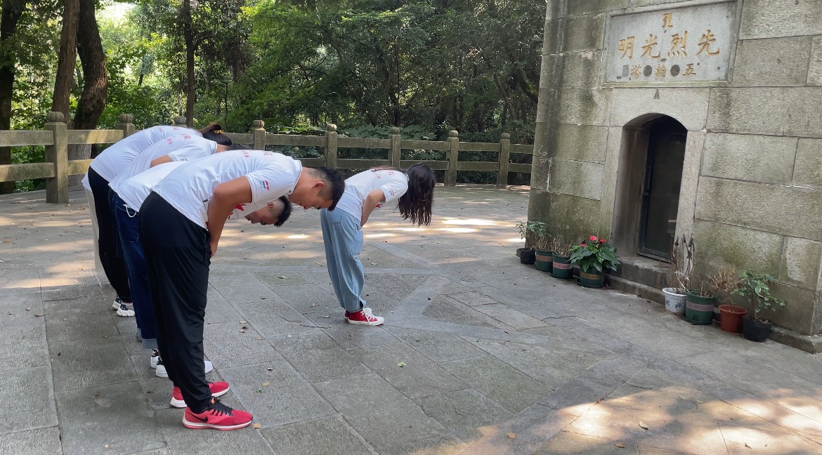 如今,被绿冠与石栏环绕的五轮塔,伫立于这麓山的清幽之中,静静地诉说着岁月的故事。成员们怀揣着沉重的心情,于墓碑前停下,鞠躬致敬。思古怀今,革命先烈们不惜用鲜血和生命去追求的民族独立、人民解放的刻骨铭心。