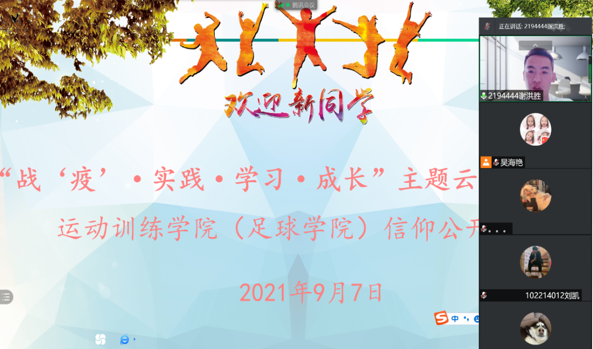 根据2021级新生入学教育工作总体安排,运动训练学院有序推进新生入学教育。9月7日下午,学院继续通过腾讯视频会议,在线组织开展防范网络诈骗、疫情防控专题教育,同时进行了学生社团建设宣讲。学院团委副书记、2021级年级辅导员吴海艳主持本次活动。学院有关领导和学院学生社团负责人参与此次活动。