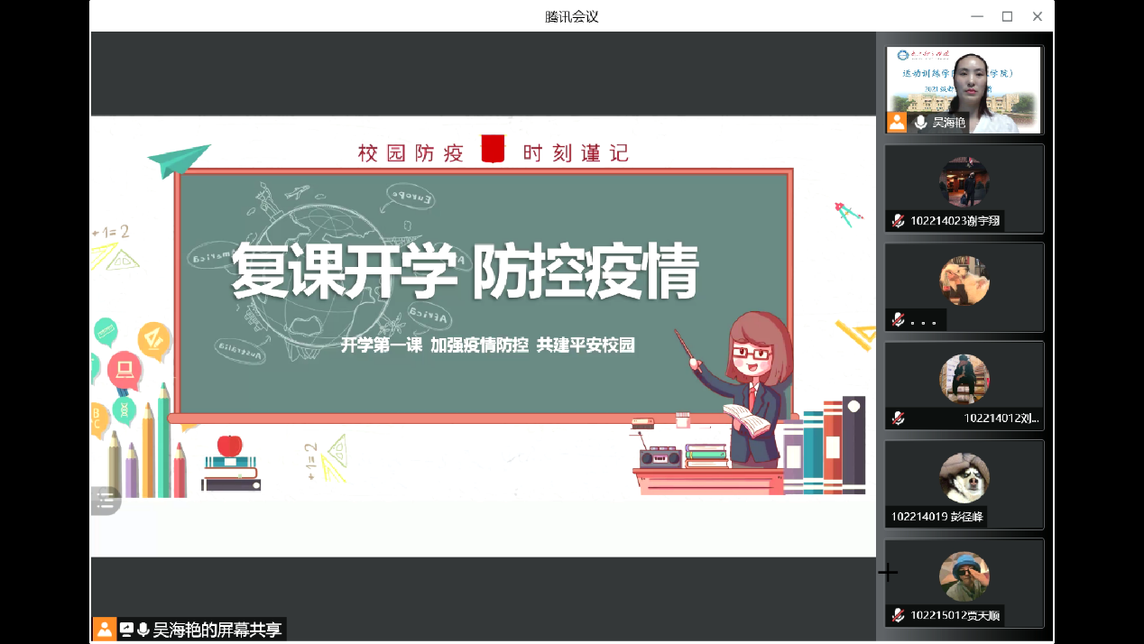 吴海艳先后以“复课开学,防控疫情”和“防范网络诈骗安全教育”为主题进行专题教育。首先从居家、入学途中、进校后三个角度,围绕服从居住地疫情防控工作管理、做好个人防护、严格遵守国家和学校有关疫情防控要求等几个方面为学生上了生动一课,要求同学们自觉做好易班打卡、养成报告制度,认真做好进校报到各项准备工作。