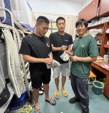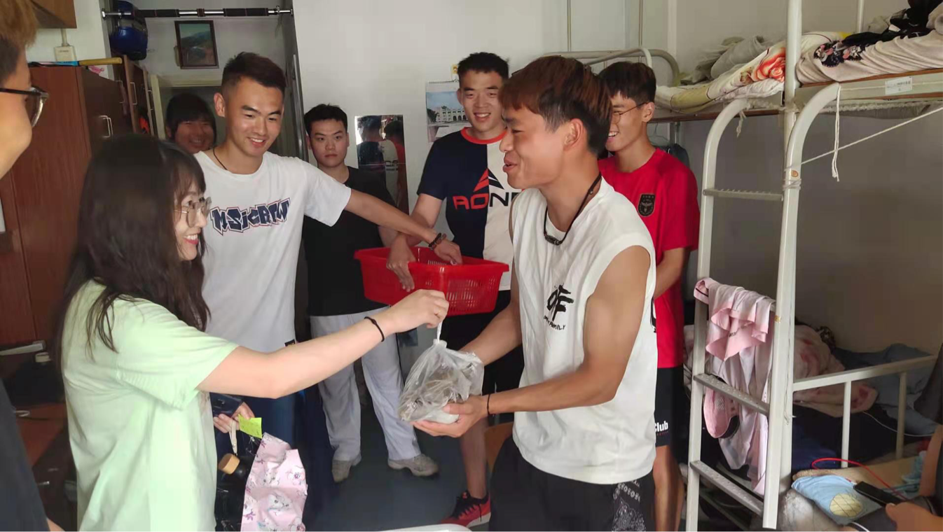 12点30分,运动训练学院教职工与学生集合在仙林校区A宿舍楼,将包好的粽子和咸鸭蛋包装好,送给宿舍楼内的同学们,使同学们在端午节来临之际感受到节日的气氛和人情的温暖。