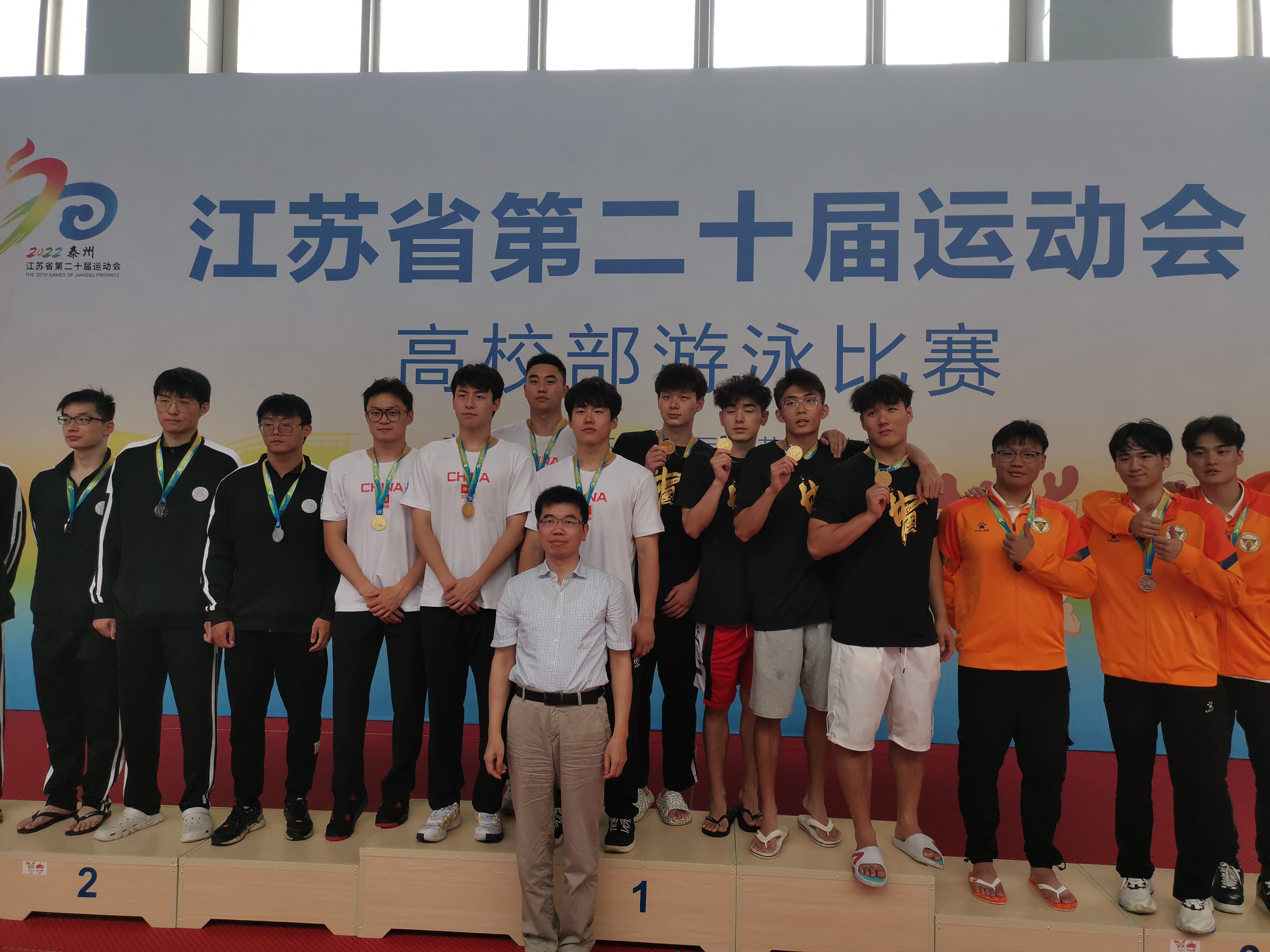 江苏省第二十届运动会高校部游泳(甲组)比赛于7月9月-11日在南京信息工程大学举行。9日下午,校党委副书记兰亚明在运动训练学院(足球学院)有关人员陪同下看望我校参赛人员,并为我校获奖运动员颁奖。