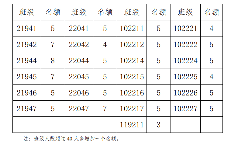学院国家助学金名额共计129人(退役士兵国家助学金不占129人的名额),按照各年级占学院总人数,各班级占各年级总人数比例(四舍五入),对129人的名额做如下配置: