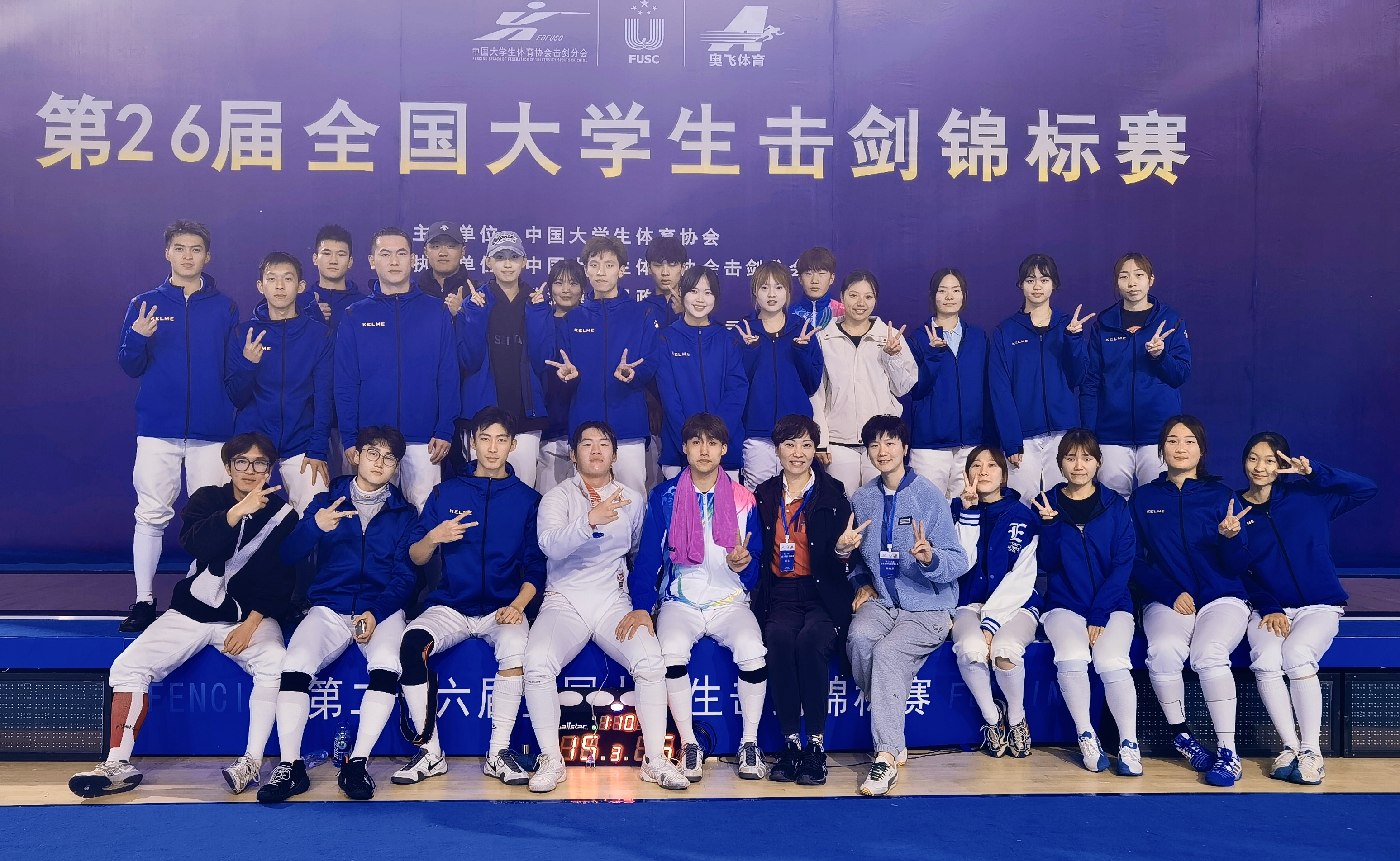 4月8日 ,第26届全国大学生击剑锦标赛在江西婺源隆重开赛。此次比赛是疫情3年后首场全国大学生比赛,可谓规模之大,水平之高。共有来自全国各地的51所高校、近700名运动员参加,其中不乏许多现役的省队和国家队运动员,我校学生参加了专业组最高级别的比赛,本次比赛由杜韫洁老师和贾亚男老师担任教练,共24名学生参赛。