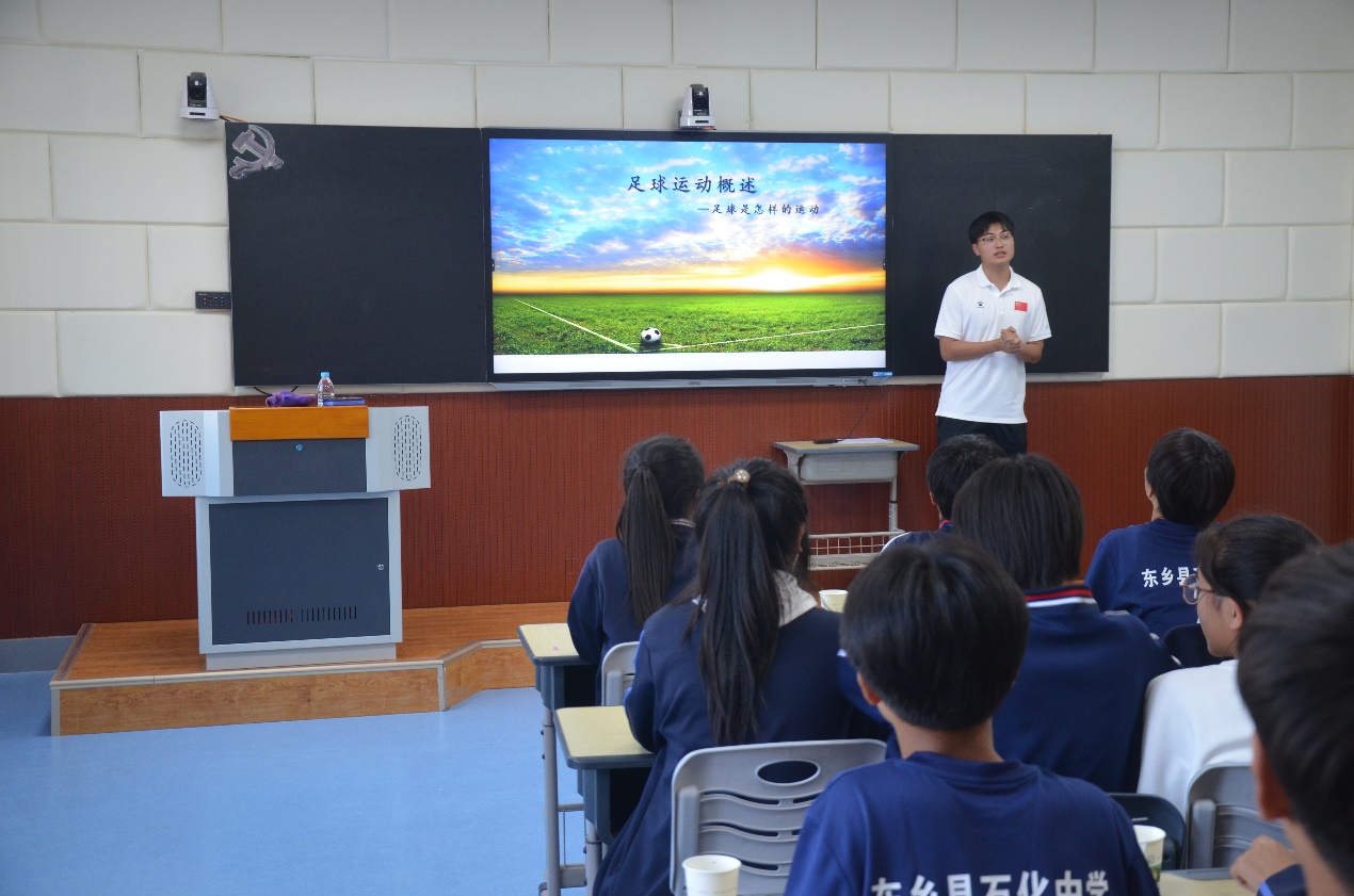实践队伍成员范心成宣讲“足球运动”及“足球裁判”知识