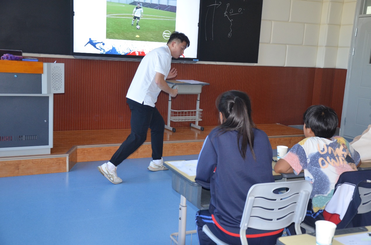 活动正式后,首先开始了“苏甘携手 乐享足球——助力健康中国”的理论知识的宣讲,包括健康中国、足球节、足球运动、足球裁判等知识普及。中国女排队员张常宁、足球裁判马宁也对本次暑期社会实践活动给予视频祝福寄语。
