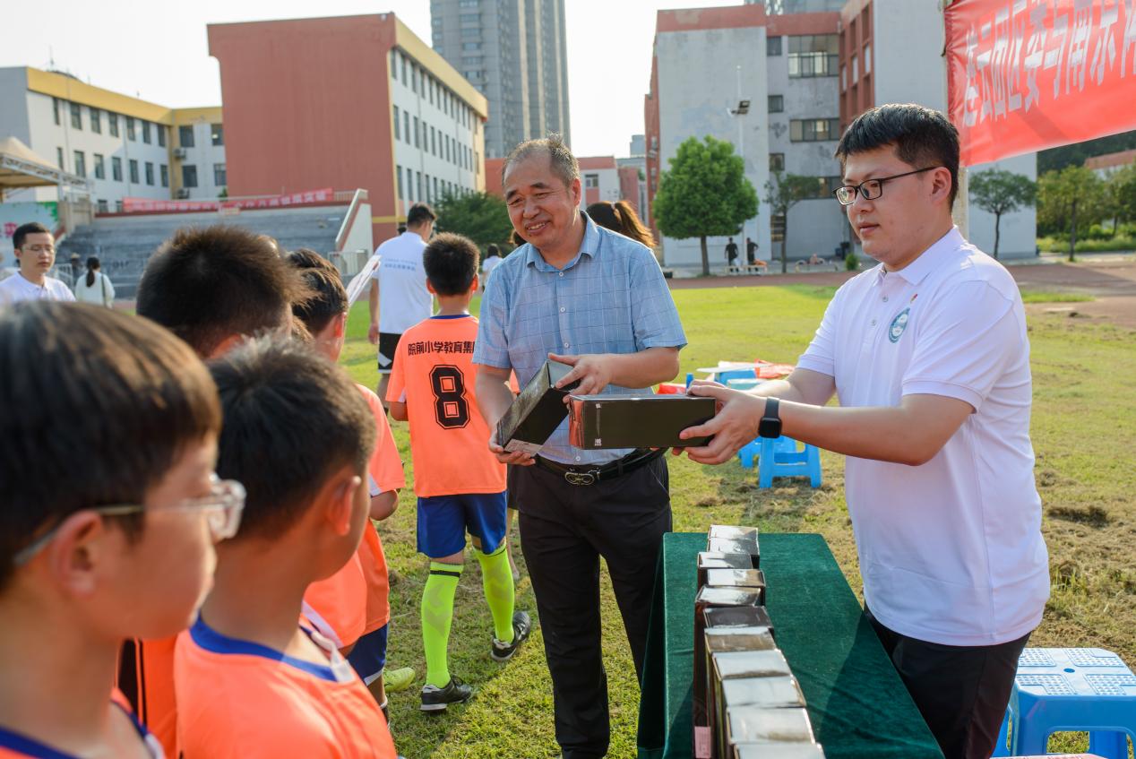 志愿服务队为连云港市院前小学足球队队员发放纪念品