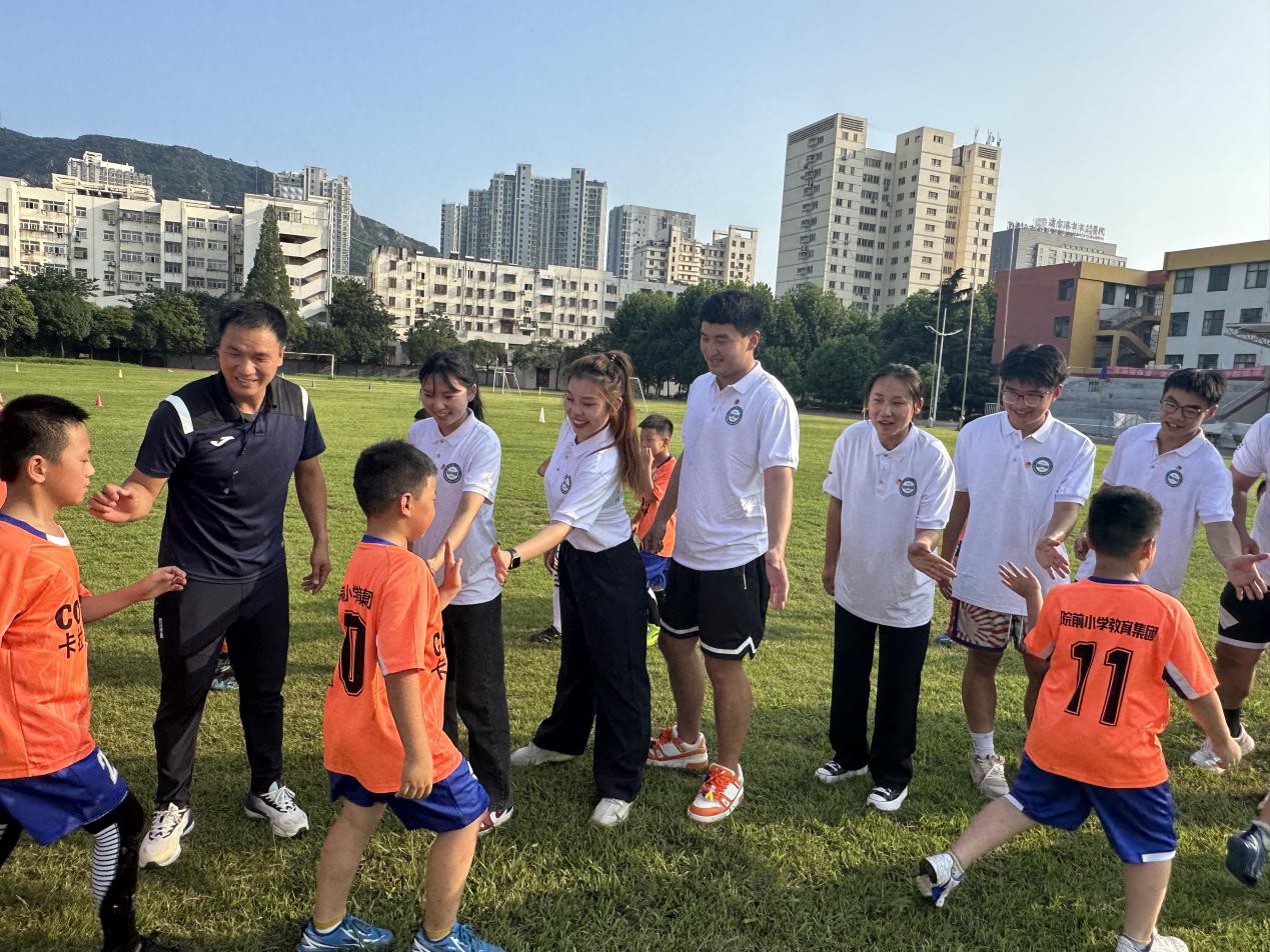 志愿服务队与连云港市院前小学足球队队员开展足球文化宣讲与教学实践