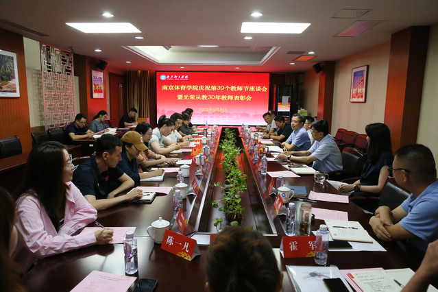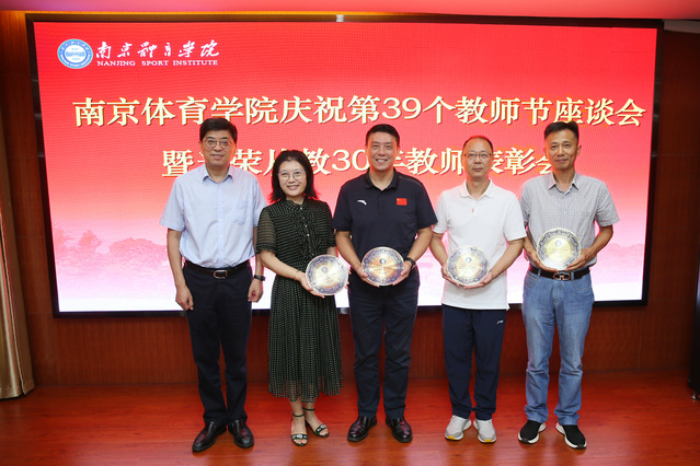 9月8日上午,我校在灵谷寺校区行政办公楼301会议室组织召开庆祝第39个教师节座谈会暨光荣从教30年教师表彰会。党委书记刘红明,党委副书记、校长杨国庆,党委副书记兰亚明,党委常委、副校长肖爱华出席会议,党政办、人事处、工会负责人,光荣从教30年教师及教师教练员代表参加会议。兰亚明主持会议。