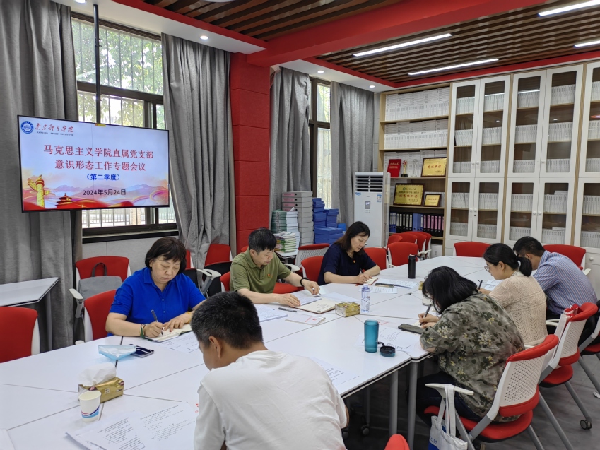 会议强调,2024年是中华人民共和国成立75周年,是实现“十四五”规划目标任务的关键一年,也是全面贯彻落实学校第九次党代会精神的开局之年,马克思主义学院要进一步理清工作思路,着力在统一思想、凝聚力量、鼓舞干劲、增强实效上下功夫,抓实抓细意识形态各项工作,奋力推动意识形态工作再上新台阶。一是要坚持科学指引,深入学习领会习近平总书记关于意识形态工作的重要论述,打牢意识形态工作的思想基础,以党的创新理论为指导,破解意识形态领域斗争的深层次矛盾和问题,进一步增强做好意识形态工作的思想自觉、政治自觉、行动自觉;二是加强组织领导,把意识形态工作摆在极其重要的位置,切实扛起意识形态工作责任,强化政治担当,增强做好意识形态工作的责任感、使命感和紧迫感;三是把稳正确方向,谨言慎行、防微杜渐,积极宣传党的路线方针政策,带头传播正能量、弘扬主旋律,立场鲜明、坚决彻底地同各种错误网络言行作斗争;四是严格阵地管理,落实守土之责,加强思政课课堂管理与监督,确保“课堂讲授有纪律”,加强学院网站、微信公众号审核,确保各类阵地可管可控。